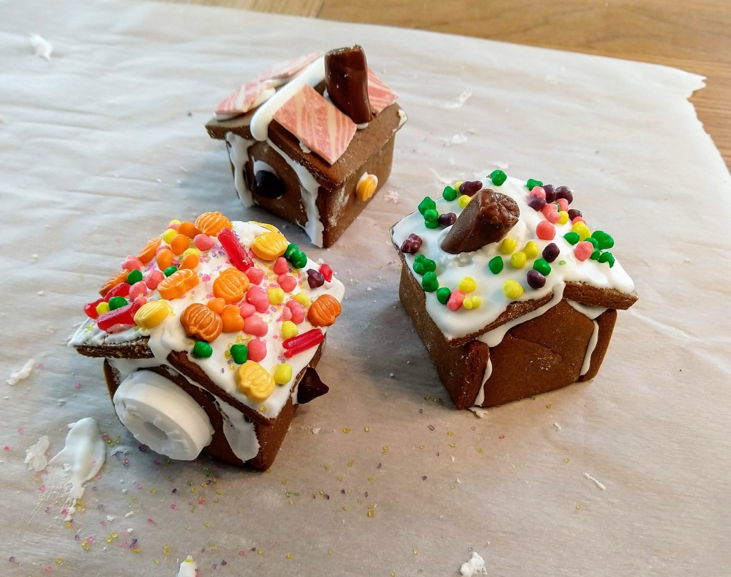 We’ve continued to seek out new celebrations each year; with small, eager children in the house now, the tradition of saving the tree for Christmas eve hasn’t quite survived, but many new traditions have been born. We eat lamb on Holy Thursday, and hot cross buns and “kibet el rahib,” or “monk’s soup,” on Good Friday. The Magi leave presents on Twelfth night, during our annual party. Gingerbread houses are constructed not only during Christmastide, but at Halloween and any other holiday that appeals to us. Sometimes we make them in the middle of summer!